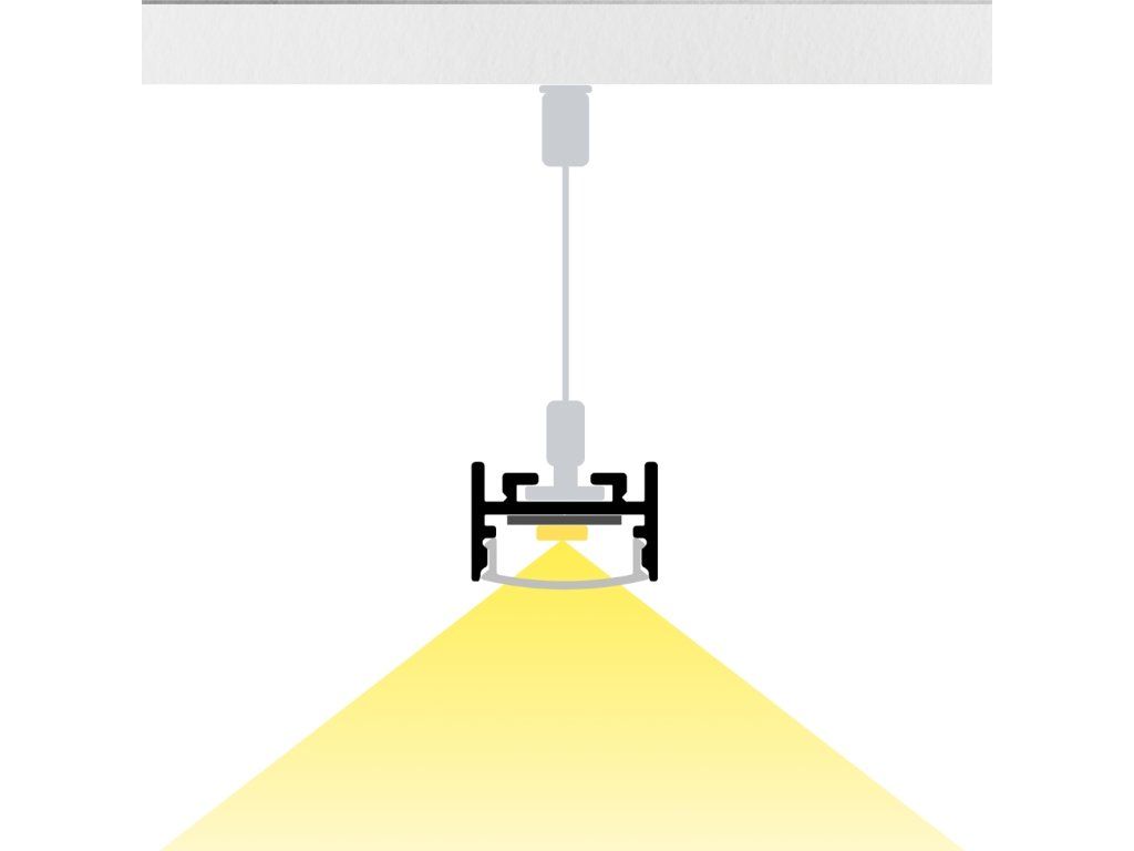 Prin utilizarea sistemului de suspendare, profilul poate fi folosit și ca o simplă lampă liniară, la care înălțimea și poziționarea pot fi ajustate după necesități. Datorită conectorilor, este posibilă conectarea profililor individuali în linii continue sau colțuri, fără tranziții vizibile.
