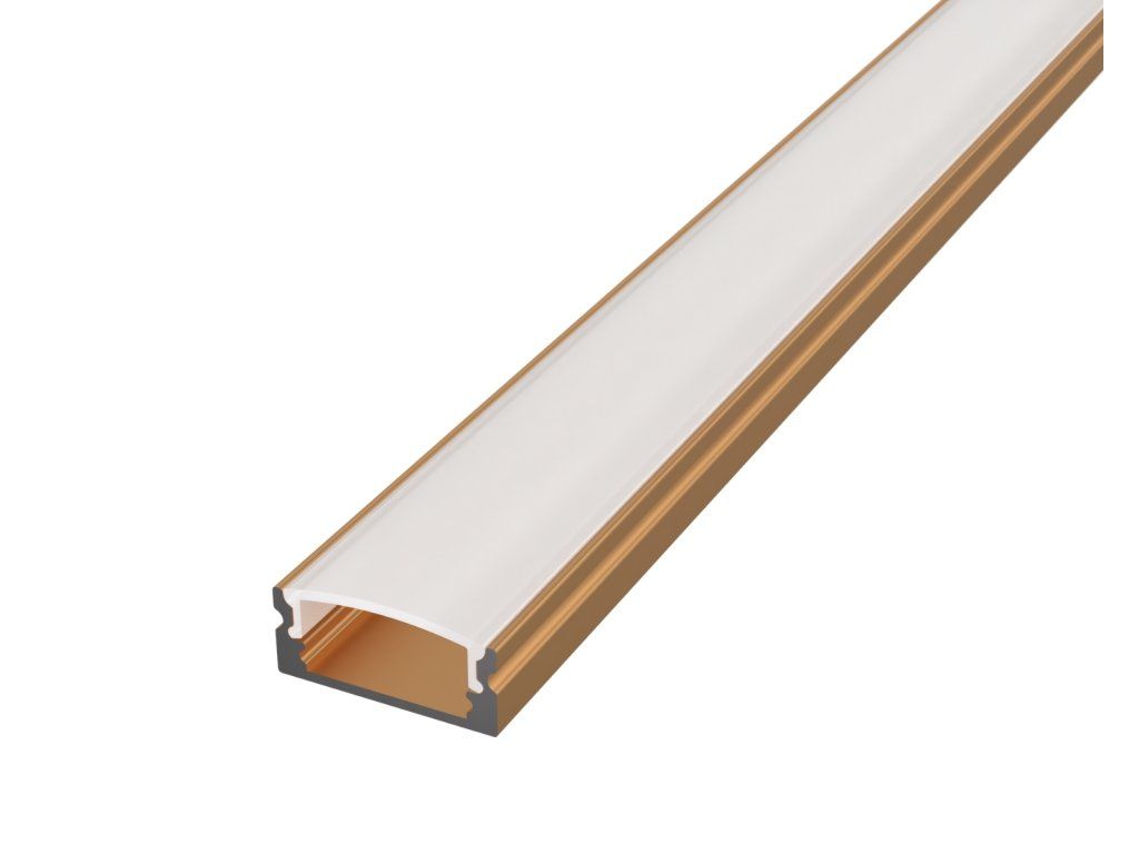 Profil de perete din aluminiu într-un elegant finisaj bronz servește drept radiator pentru banda LED și, în același timp, ca un element de design distinctiv, care se potrivește bine în interioare cu lemn, piatră sau accesorii metalice calde. Datorită nuanței sale, nu pare tehnic, ci completează în mod natural spațiul modern și industrial.