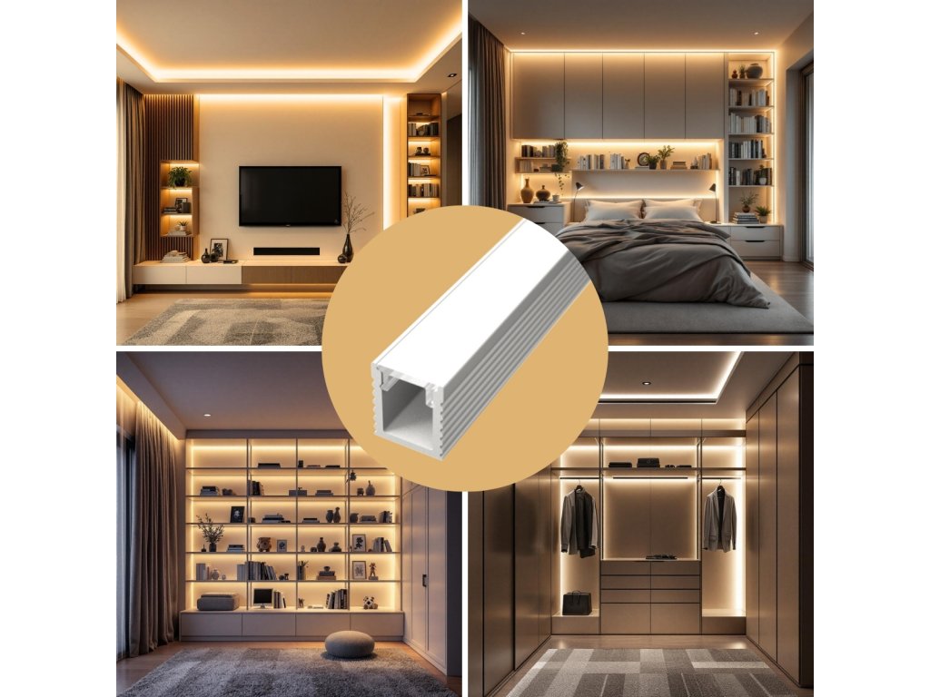 Acest profil SLIM din aluminiu, sau șină, servește nu numai ca radiator pentru banda LED, ci și ca element de design pentru casa dvs. sau ca accesoriu de mobilier. Datorită dimensiunilor sale compacte, profilul este destinat benzilor LED cu o lățime maximă de 5 mm. Este potrivit atât pentru montaj aplicat pe perete sau alt suport, cât și pentru încastrare în elemente de mobilier, panouri decorative sau lamele de placare 3D, unde arată foarte discret și elegant.
