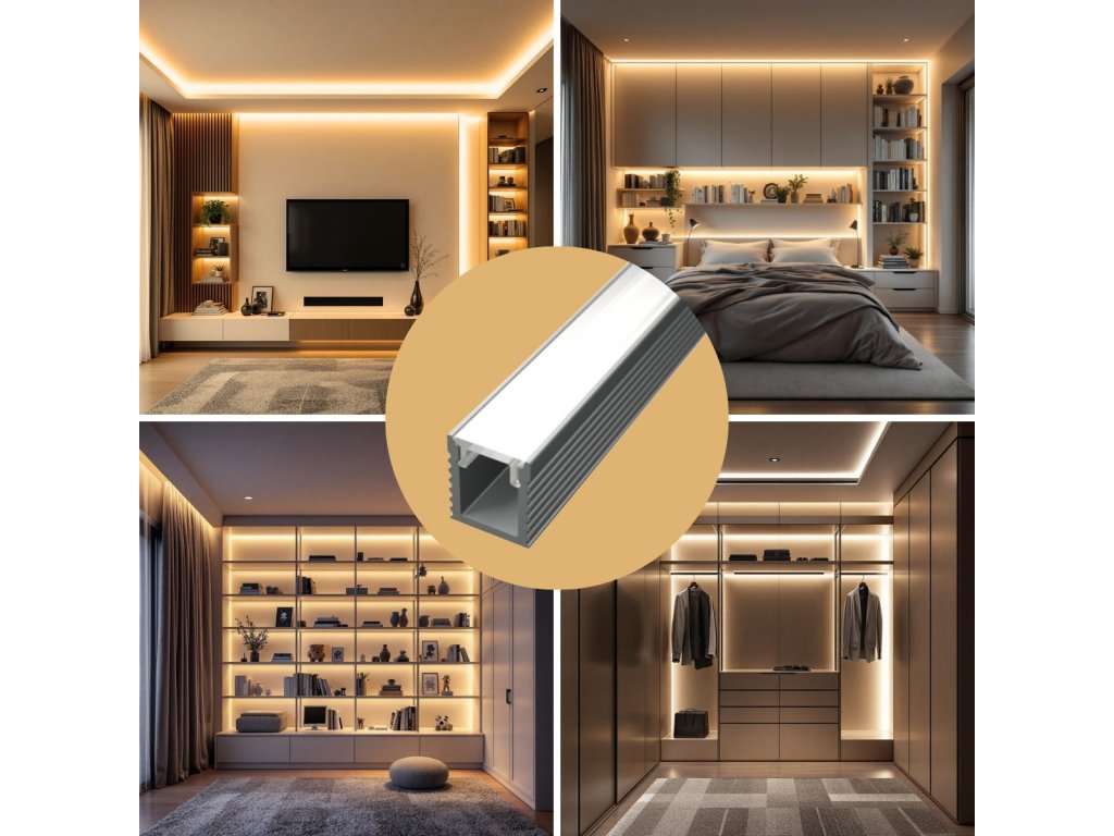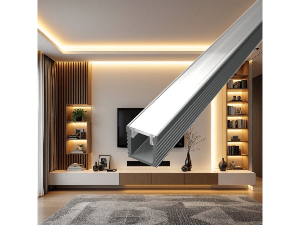 Acest profil SLIM din aluminiu, sau șină, servește nu numai ca radiator pentru banda LED, ci și ca element de design pentru casa dvs. sau ca accesoriu de mobilier. Datorită dimensiunilor sale compacte, profilul este destinat benzilor LED cu o lățime maximă de 5 mm. Este potrivit atât pentru montaj aplicat pe perete sau alt suport, cât și pentru încastrare în elemente de mobilier, panouri decorative sau lamele de placare 3D, unde arată foarte discret și elegant.