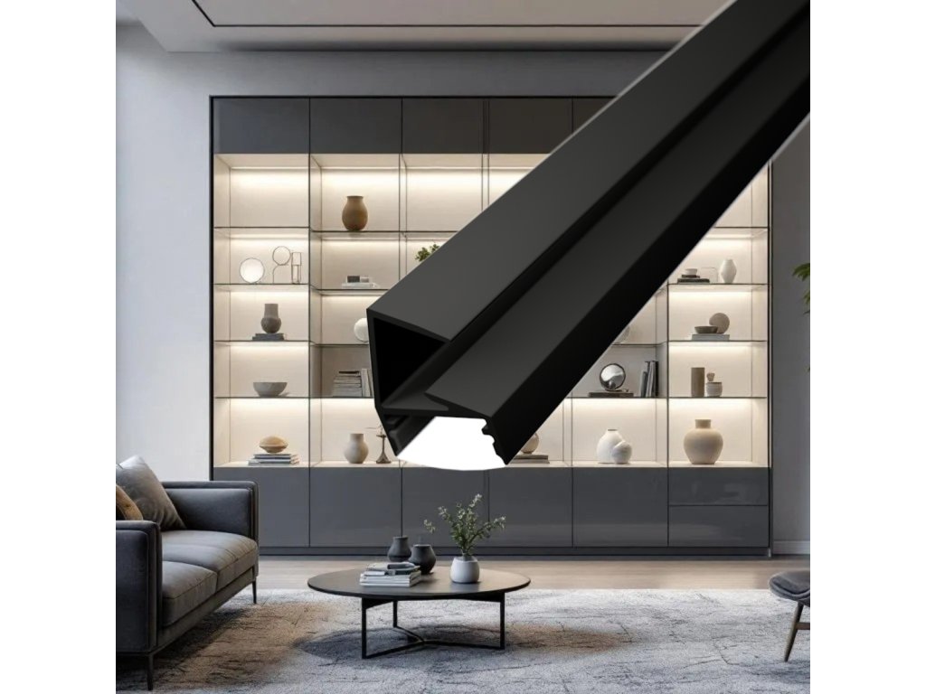 Elegant și practic, profilul din aluminiu pentru benzile LED este conceput pentru a ilumina rafturile de sticlă, vitrinele sau ansamblurile de mobilier. Se glisează ușor pe un raft de sticlă cu o grosime de 8 mm și, datorită unghiului de iluminare de 20° în jos, evidențiază perfect obiectele expuse, fără a orbi sau a perturba designul general al interiorului.