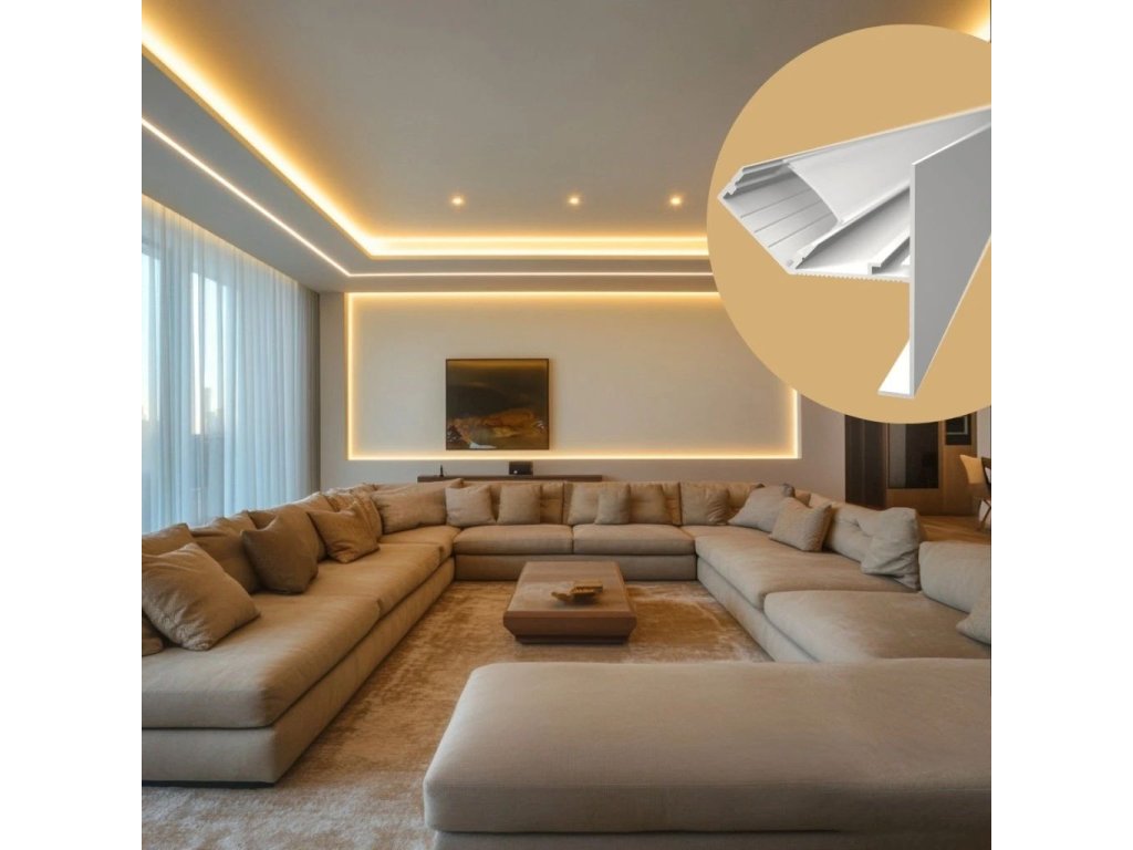 Instalarea în sine este ușoară și eficientă. Profilul este pur și simplu glisat pe marginea plăcii de ipsos cu grosimea de 50 mm și fixat cu șuruburi. Marginea inferioară a profilului este apoi vopsită în nuanța dorită, asigurând un aspect perfect și o integrare perfectă a iluminatului în interior.