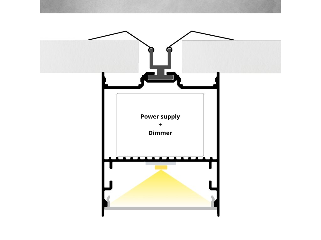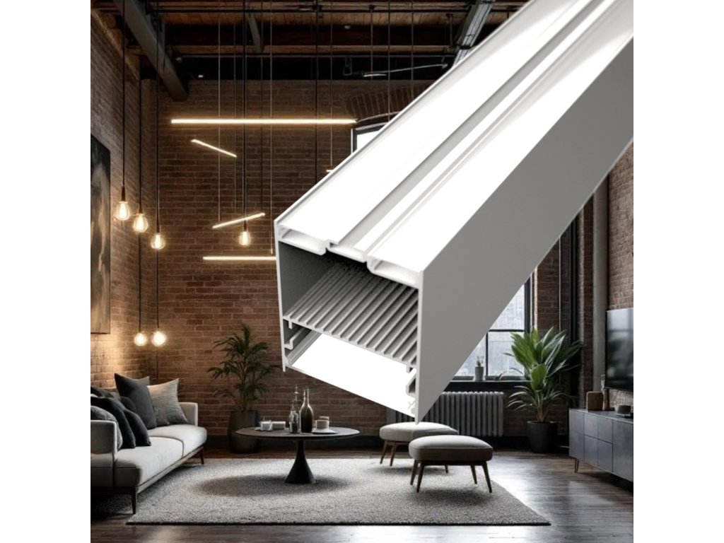 Acest profil suspendat din aluminiu este o soluție universală pentru interioarele moderne. Poate fi utilizat pentru montaj suspendat, aplicat și în gips-carton și oferă o combinație de iluminare directă și indirectă. Datorită cavității spațioase, permite ascunderea sursei de alimentare și a variatorului direct în profil, ceea ce asigură o instalare curată și minimalistă.