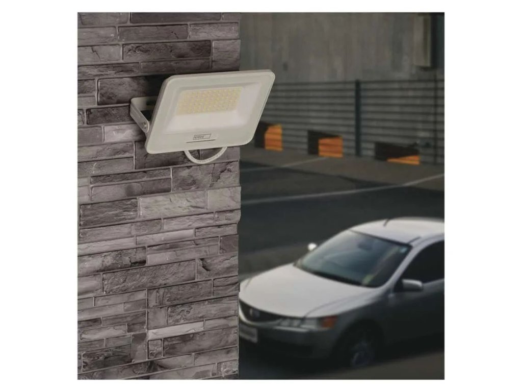 Reflector LED cu o putere de 50 W oferă o eficiență luminoasă ridicată de 100 lm/W, asigurând o iluminare puternică, dar economică, pentru utilizare atât în exterior, cât și în interior. Fluxul luminos de 5.000 lm iluminează în mod fiabil fațadele caselor, aleile de acces, grădinile, garajele și spațiile comerciale mai mici. Culoarea neutră a luminii albe, cu o temperatură de 4.000 K, asigură o vizibilitate naturală și o iluminare uniformă, fără nuanțe de culoare neplăcute, fiind potrivită pentru orientare, mișcare sigură și lucru.