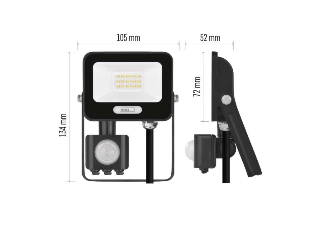 Reflector LED cu o putere de 10 W oferă o eficiență luminoasă ridicată de 100 lm/W, asigurând o iluminare puternică și, în același timp, economică pentru utilizare atât în exterior, cât și în interior. Fluxul luminos de 1.000 lm iluminează în mod fiabil fațadele caselor, aleile de acces, grădinile, garajele și spațiile comerciale mai mici. Culoarea neutră a luminii albe, cu o temperatură de 4.000 K, asigură o vizibilitate naturală și o iluminare uniformă, fără nuanțe de culoare neplăcute, fiind potrivită pentru orientare, mișcare sigură și lucru.