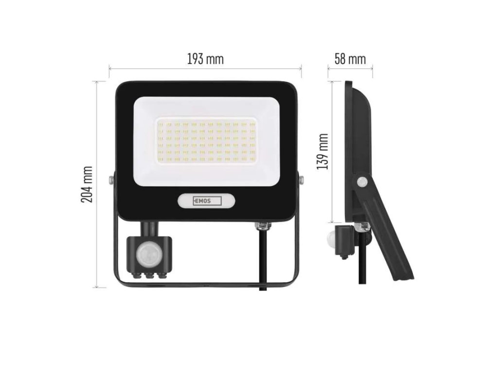 O componentă a construcției este un suport de montare practic, înclinat, care permite ajustarea ușoară a direcției precise de iluminare și fixarea reflectorului pe fațadă, perete sau altă suprafață fără modificări complicate. Pentru conectare rapidă, este disponibil un cablu de alimentare cu manta de cauciuc, cu o lungime de 25 cm, care asigură o conexiune sigură și fiabilă. Reflectorul se aprinde instantaneu la putere maximă după pornire, funcționează fără pâlpâire și, datorită tehnologiei LED moderne, reduce semnificativ costurile de operare.
