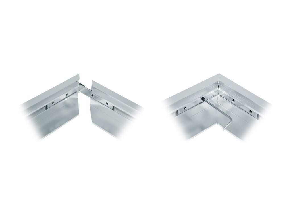În primul rând, cele 3 laturi ale cadrului sunt asamblate, sunt atașate la tavan și panoul este introdus în cadru împreună cu sursa de alimentare. Apoi, a patra parte a panoului este blocată și asamblarea este completă. Se recomandă să nu strângeți șuruburile interne cu prea multă forță, există riscul de deformare a cadrului.