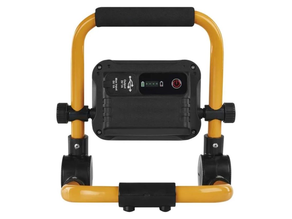 Reflectorul portabil cu LED, reîncărcabil, cu o putere de 10 W este un ajutor ideal oriunde aveți nevoie de lumină puternică, dar nu aveți acces direct la rețeaua electrică. Acumulatorul Li-Ion încorporat cu o capacitate de 4 400 mAh asigură independența totală față de conectarea la priză și permite iluminarea timp de 3 până la 10 ore, în funcție de modul selectat. Astfel, puteți utiliza reflectorul fără probleme atât pe șantier, cât și în garaj, atelier sau la camping. Carcasa robustă din aluminiu este rezistentă la șocuri și umiditate, deoarece gradul de protecție IP54 înseamnă protecție împotriva stropirii cu apă și a pătrunderii parțiale a prafului.