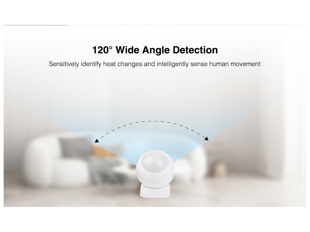 - Senzorul are o rază de acțiune de până la 7 m și un unghi al fasciculului de 120°.