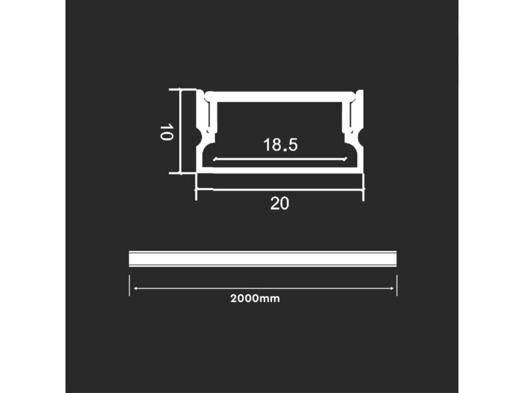 Set de profil din aluminiu pentru montare pe perete pentru benzi LED cu o lungime de 2 metri, destinat instalării simple și estetice a benzilor LED pe perete sau pe alte suprafețe plane. Profilul din aluminiu asigură o fixare fermă și o disipare eficientă a căldurii, în timp ce difuzorul cu clips distribuie uniform lumina și reduce strălucirea. Pachetul include profilul, difuzorul și capacele de capăt.