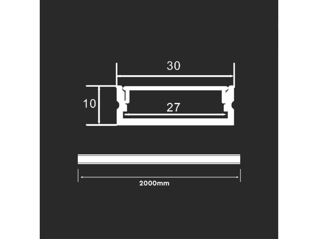 Set de profil din aluminiu pentru montare pe perete pentru benzi LED cu o lungime de 2 metri, destinat instalării simple și estetice a benzilor LED pe perete sau pe alte suprafețe plane. Profilul din aluminiu asigură o fixare fermă și o disipare eficientă a căldurii, în timp ce difuzorul cu clips distribuie uniform lumina și reduce strălucirea. Pachetul include profilul, difuzorul și capacele de capăt.