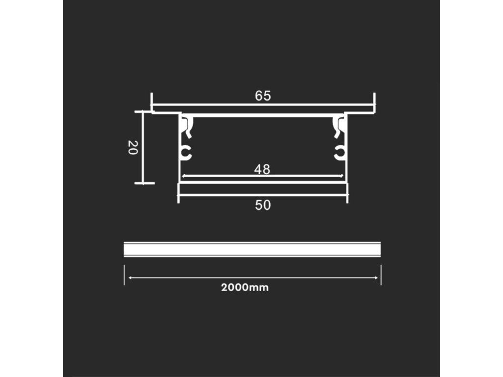 Set de profil din aluminiu încastrat pentru benzi LED cu o lungime de 2 metri servește la instalarea simplă și estetică a benzilor LED în suprafață, unde profilul se aliniază cu materialul înconjurător, creând un aspect curat, încastrat. Profilul din aluminiu asigură o fixare fermă și o disipare eficientă a căldurii, în timp ce difuzorul cu clips distribuie uniform lumina și reduce strălucirea. Pachetul include profilul, difuzorul și capacele de capăt.