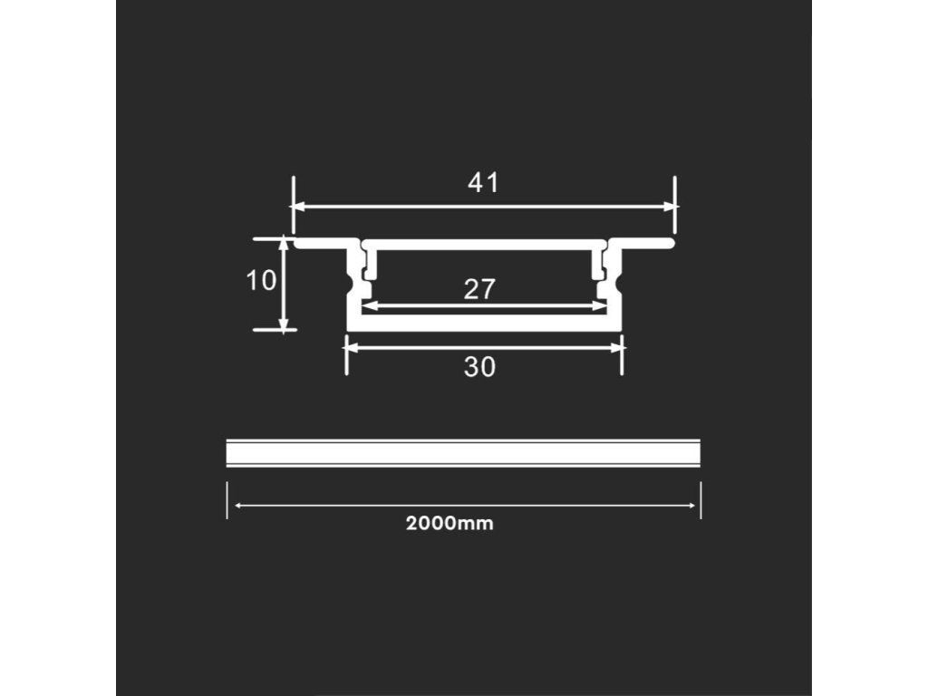 Set de profil din aluminiu încastrat pentru benzi LED cu o lungime de 2 metri servește la instalarea simplă și estetică a benzilor LED în suprafață, unde profilul se aliniază cu materialul înconjurător, creând un aspect curat, încastrat. Profilul din aluminiu asigură o fixare fermă și o disipare eficientă a căldurii, în timp ce difuzorul cu clips distribuie uniform lumina și reduce strălucirea. Pachetul include profilul, difuzorul și capacele de capăt.
