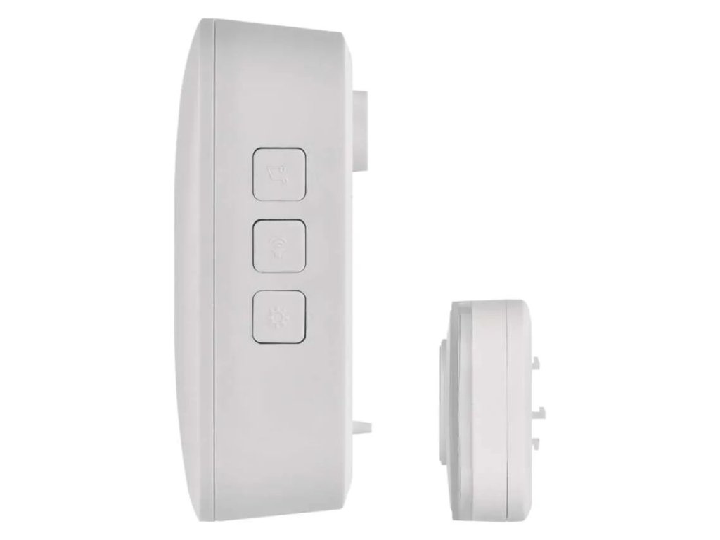 Soneria fără fir de interior P5736 se remarcă printr-un design curat și atemporal, care se integrează ușor în orice interior. Receptorul compact poate fi amplasat practic oriunde în casă, fără a necesita o instalare complexă, în timp ce butonul exterior cu protecție IP55 rezistă cu succes ploii și condițiilor meteorologice nefavorabile.