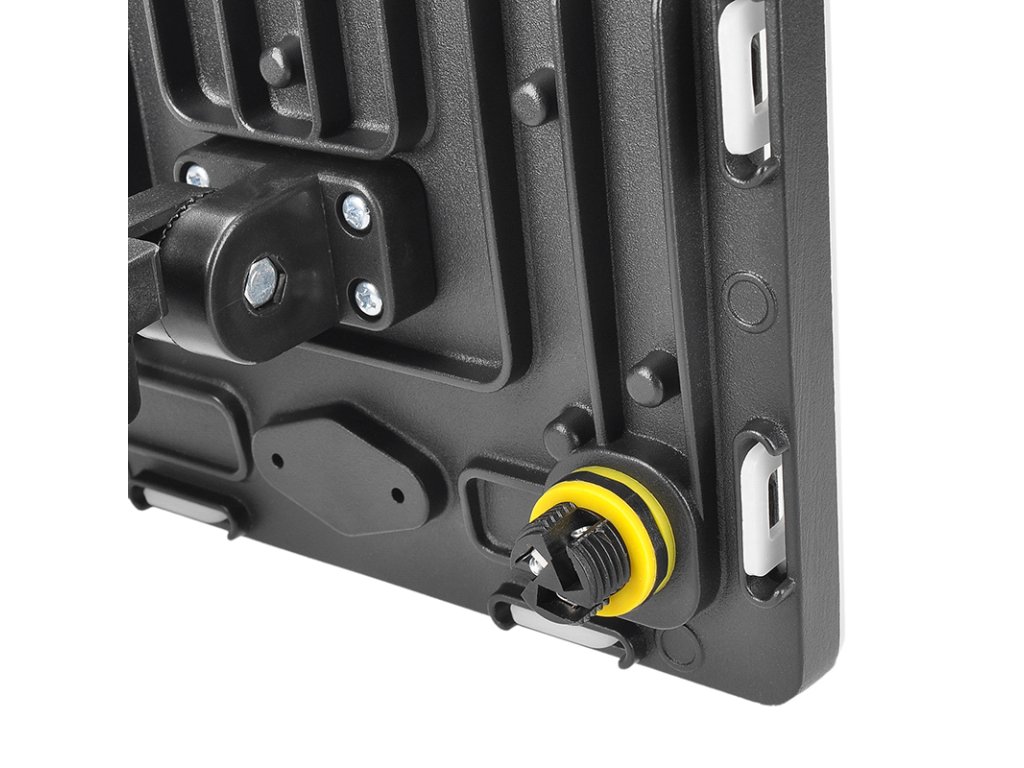 Reflectorul este echipat cu un grad ridicat de protecție IP65, care asigură utilizarea în siguranță chiar și în condiții exterioare dificile. Plus este dotat si cu conector impermeabil, care prevede conectare sigură la rețea. Conectorul de conectare este proiectat pentru diametrul cablului 4-8 mm.
