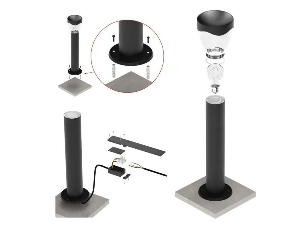 Gradul de protecție IP44 asigură protecție împotriva stropirii cu apă și a pătrunderii particulelor mici, ceea ce garantează o durată lungă de viață chiar și atunci când este amplasat în zone mai puțin acoperite ale grădinii. Alimentarea se face prin conectarea directă la rețeaua electrică de 230 V. Instalarea corpului de iluminat este ușoară – stâlpul este adaptat pentru o fixare fermă pe substrat.