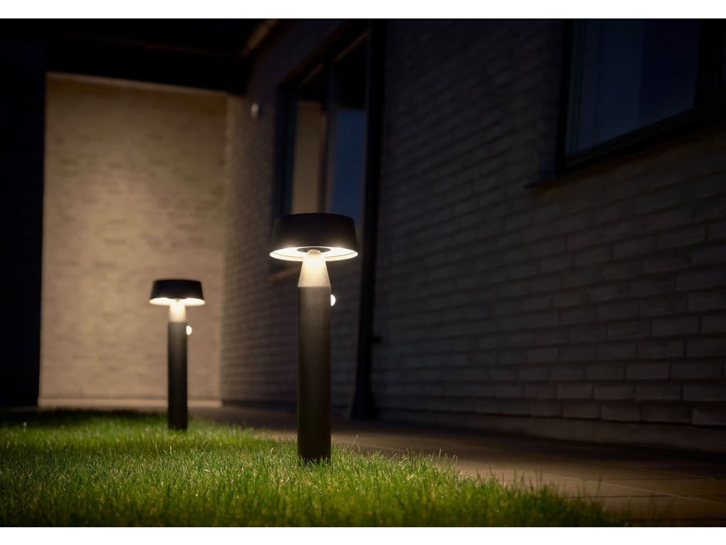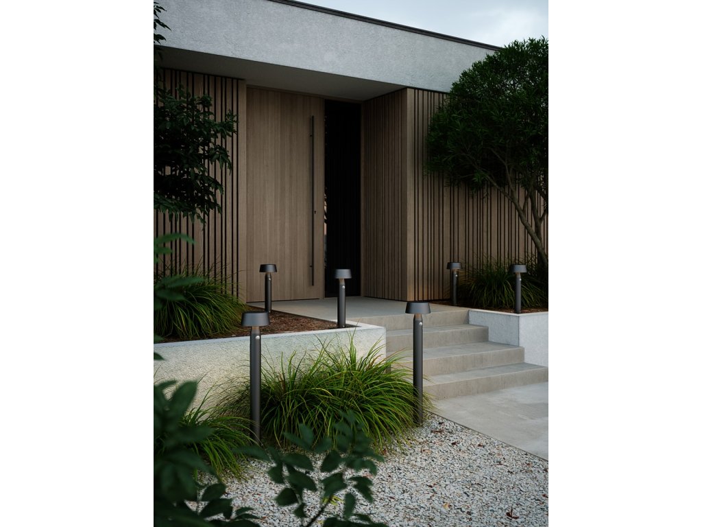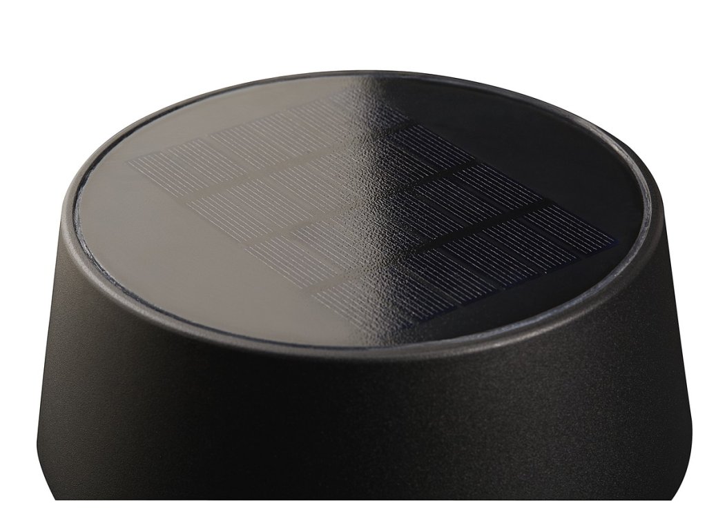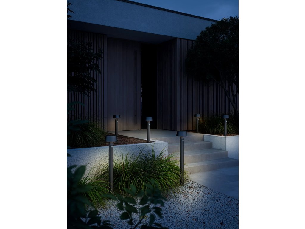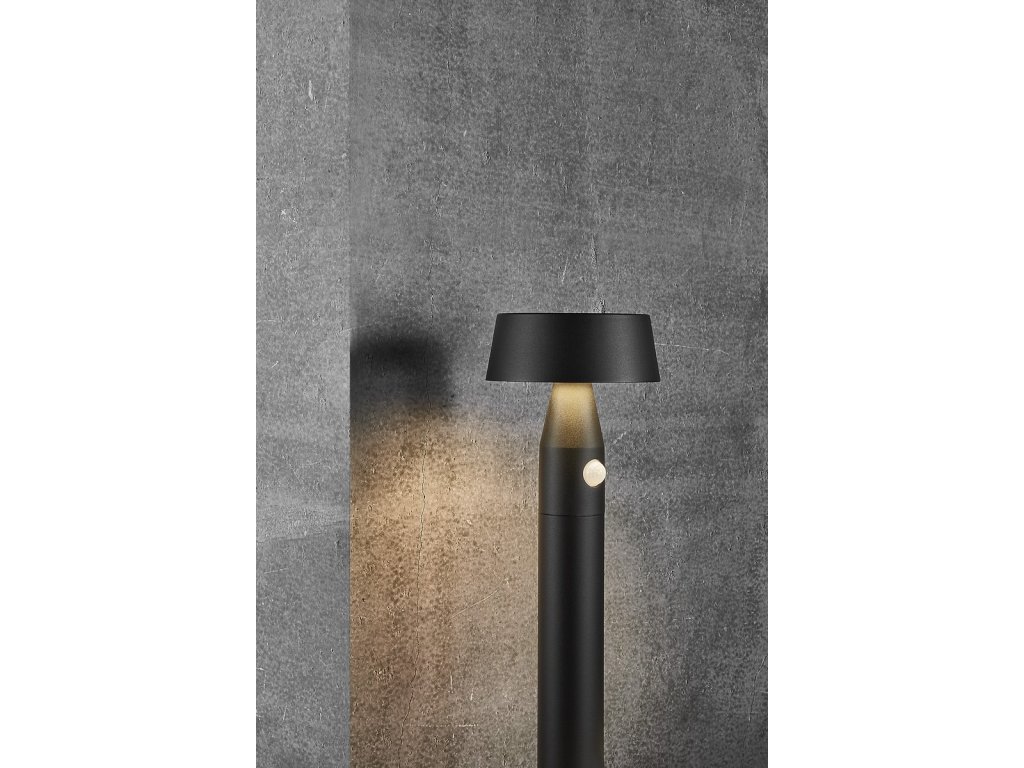 Stâlp de grădină în aer liber Nama 50 într-un design minimalist din colecția Nama a companiei daneze Nordlux. Lampa include un panou solar policristalin, care furnizează energie pentru baterie reîncărcabilă Lithium 2600mAh. Încărcarea corpului de iluminat se face prin energie solară, care în 15 ore umple bateria de la 0% la 100%.