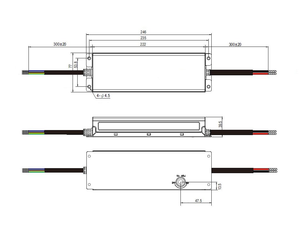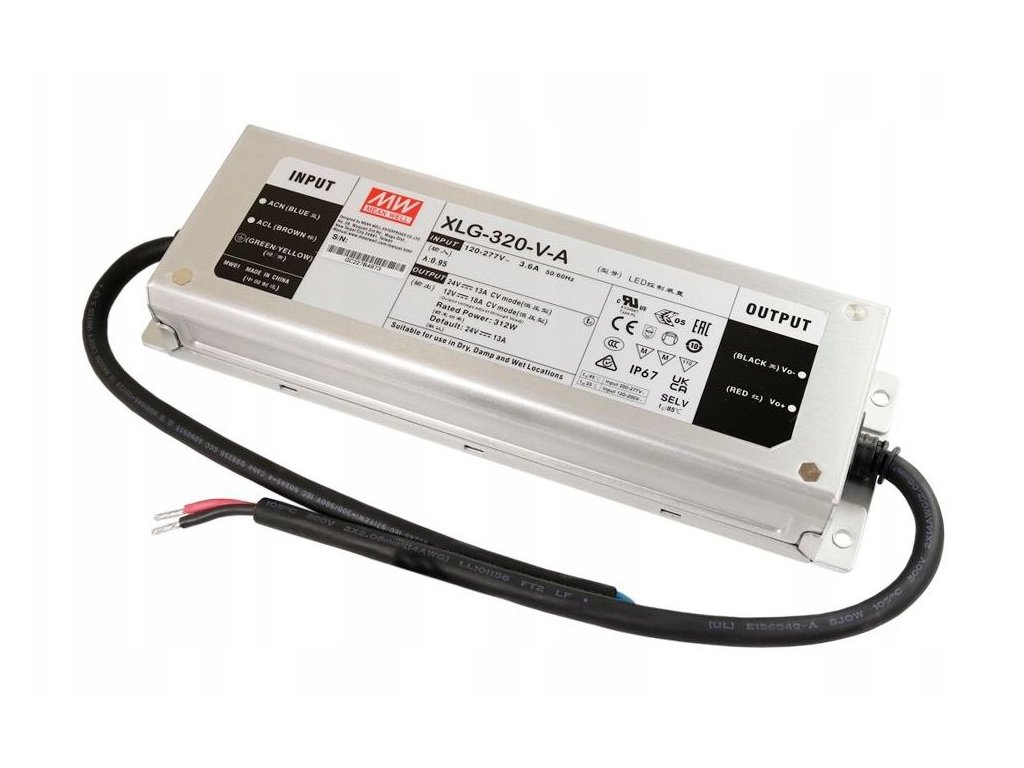 Sursa de alimentare transformă tensiunea de la rețea (AC 230 V) în tensiune continuă joasă și este echipată cu un comutator pe partea inferioară, cu care se poate selecta cu ușurință tensiunea de ieșire – DC 12 V (18 A / 216 W) sau DC 24 V (13 A / 312 W). Datorită acestui fapt, se adaptează cu ușurință la diferite tipuri de aplicații LED. Sursa de alimentare funcționează în modul de putere constantă și utilizează electronice eficiente cu o eficiență tipică de până la 93%, fără a fi nevoie de un ventilator.