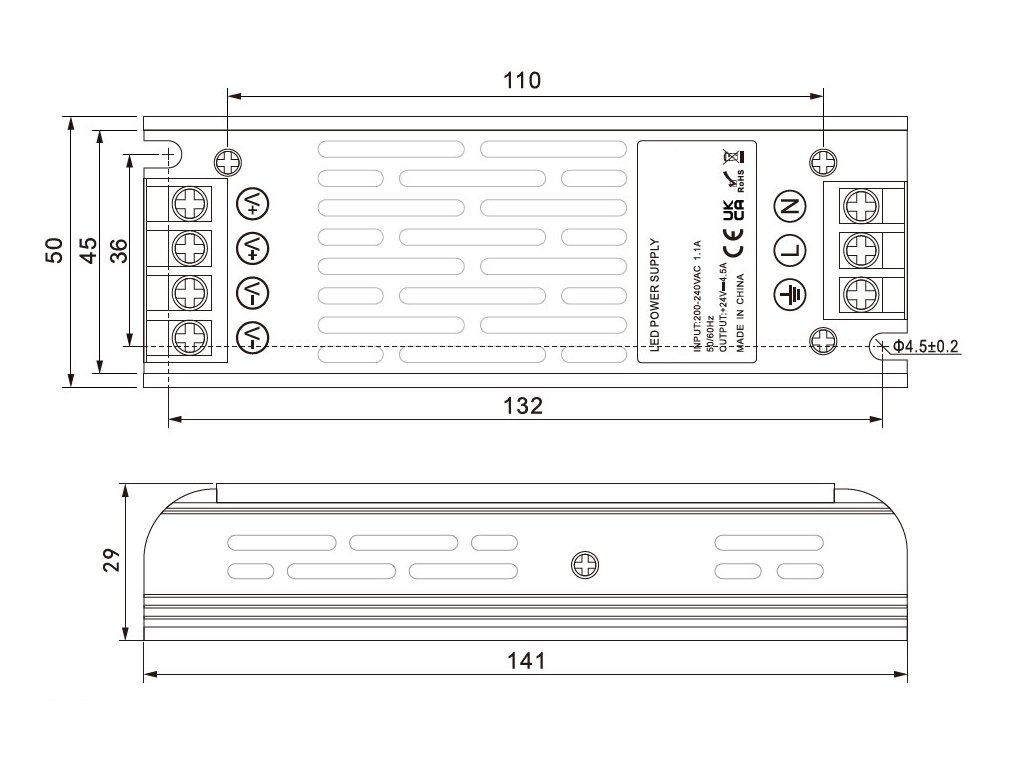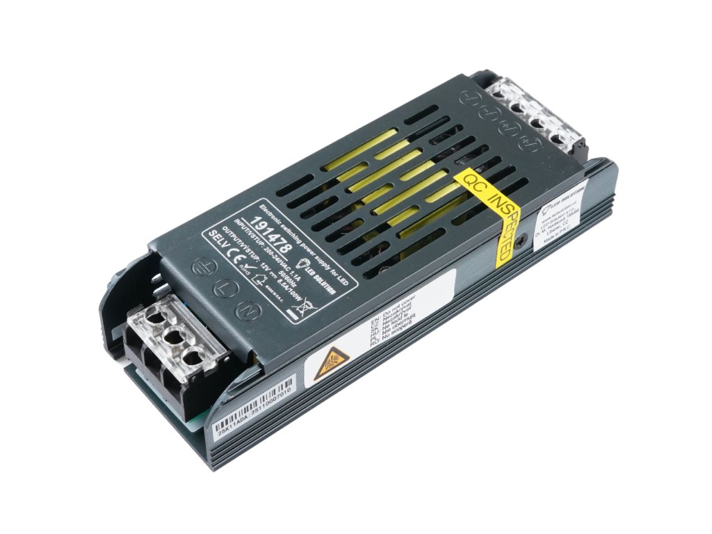 Sursa de alimentare este cu comutare electronică și este echipată cu protecție la scurtcircuit și la suprasarcină. În cazul unui scurtcircuit, sursa de alimentare se protejează automat și, după eliminarea acestuia, este din nou complet funcțională, ceea ce contribuie la funcționarea sigură și la protecția iluminării LED conectate.
