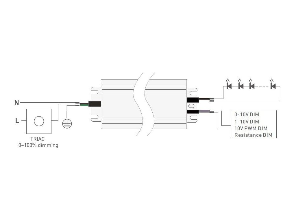 Avantajul acestei surse este posibilitatea universală de reglare, deoarece acceptă imediat mai multe moduri de reglare a intensității luminoase. Puteți controla luminozitatea cu un variator TRIAC clasic sau cu semnale de control 0–10 V, 1–10 V, 10 V PWM sau cu un rezistor în intervalul 0–100 kΩ. Acest lucru permite adaptarea ușoară la un anumit sistem și mediu în care va fi instalat iluminatul.