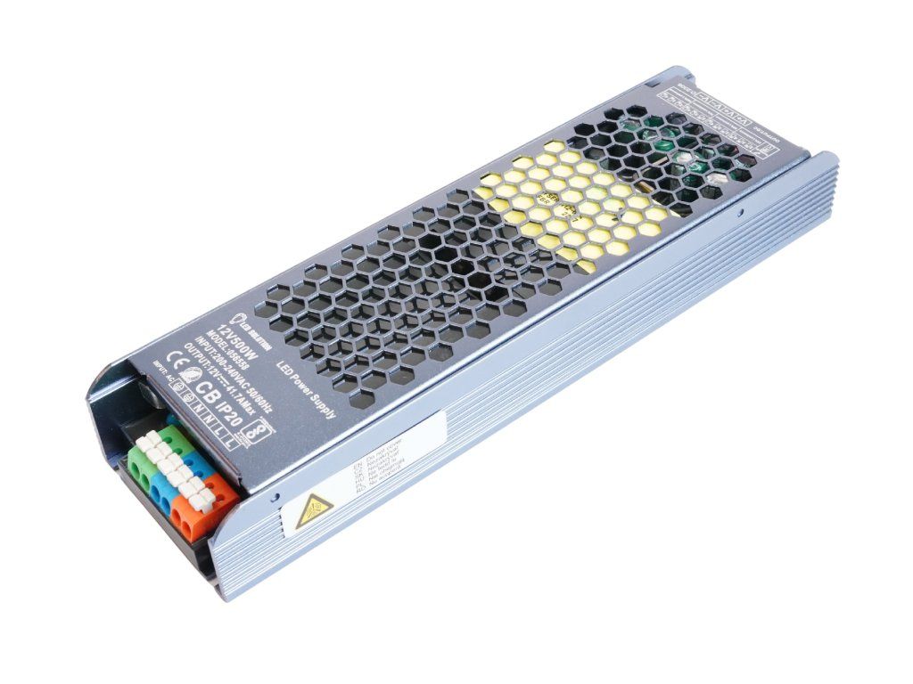 Sursele de alimentare sunt utilizate pentru alimentarea corpurilor de iluminat cu LED-uri. Acestea convertesc tensiunea de la rețea (AC 230 V) în tensiune joasă (DC 12 V / 41,7 A). Sunt echipate cu siguranță termică, protecție la suprasarcină și protecție la scurtcircuit. După eliminarea scurtcircuitului, sursa de alimentare devine din nou complet funcțională.