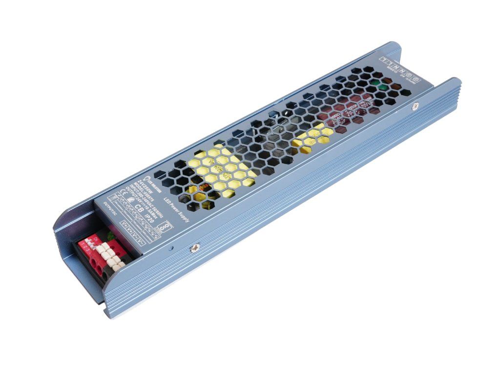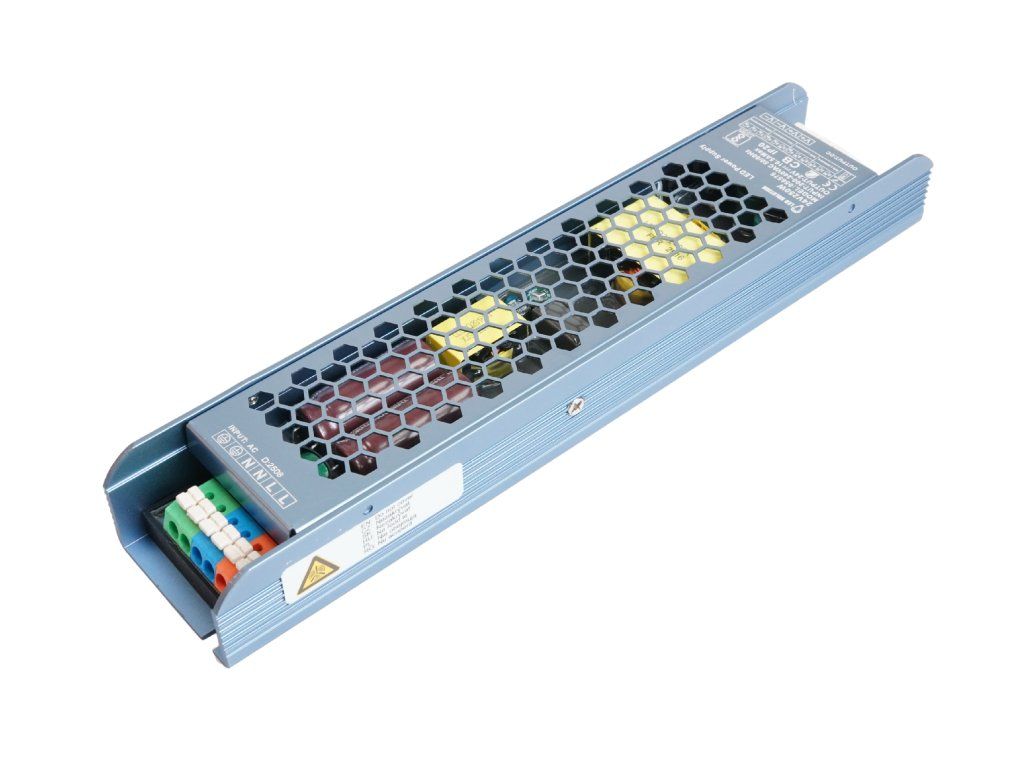 Sursele de alimentare sunt utilizate pentru alimentarea corpurilor de iluminat cu LED-uri. Acestea convertesc tensiunea de la rețea (AC 230 V) în tensiune joasă (DC 24 V / 10,5 A). Sunt echipate cu siguranță termică, protecție la suprasarcină și protecție la scurtcircuit. După eliminarea scurtcircuitului, sursa de alimentare devine din nou complet funcțională.