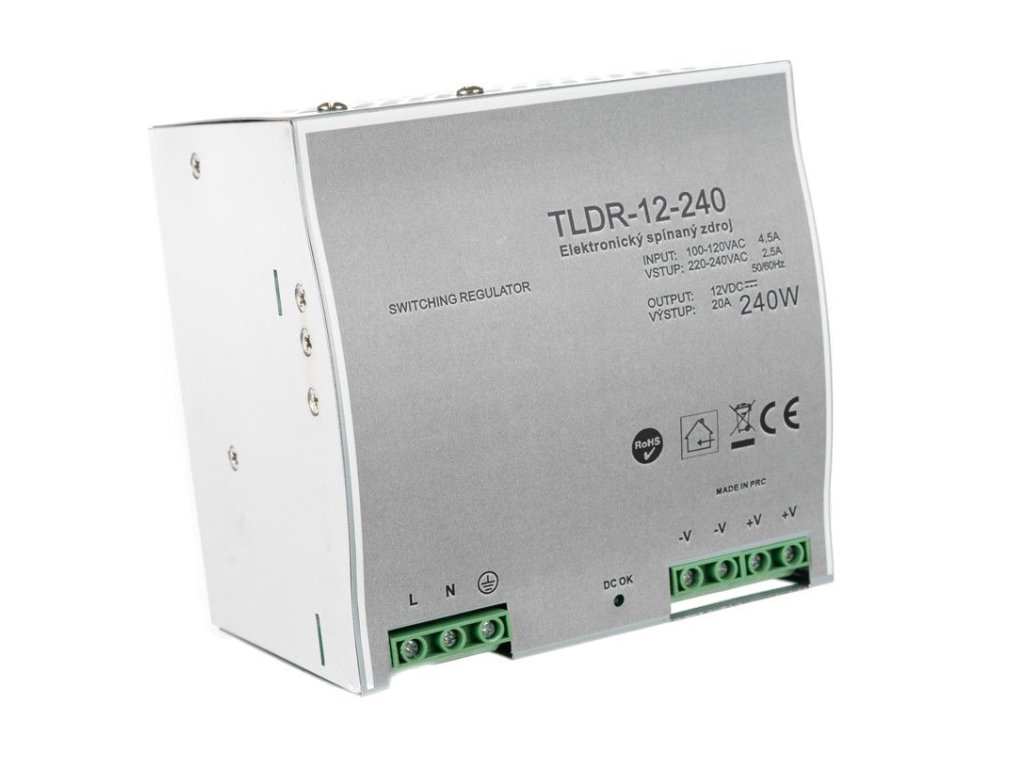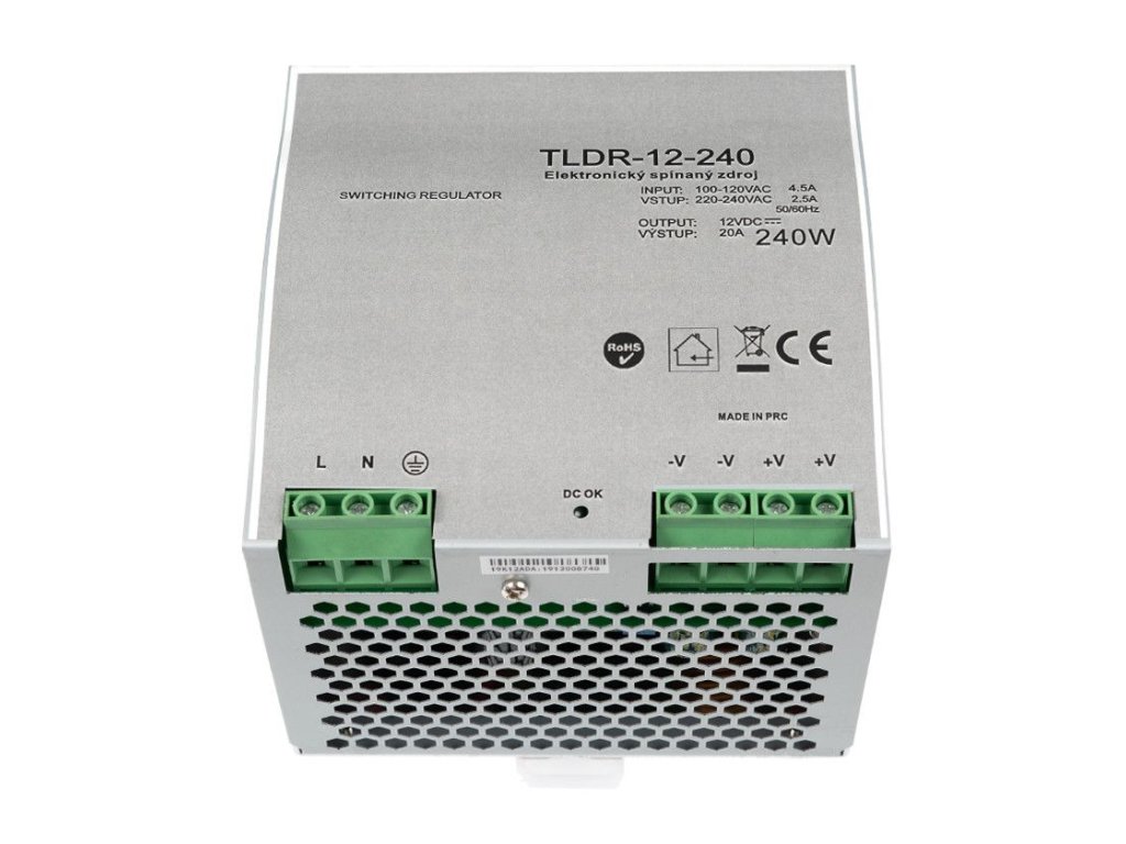 Sursă de alimentare electronică de comutare pentru benzi LED cu putere de 240W (transformator) proiectată pentru utilizare în interior, montabilă pe șină DIN în tablou de distribuție. Acesta este echipat cu protecție termică, la scurtcircuit și la suprasarcină. Tensiunea de ieșire poate fi reglată manual (±10%).