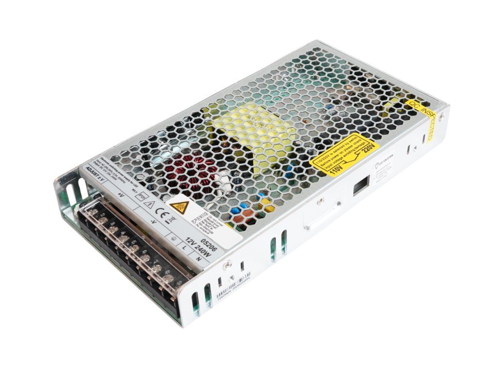 Sursele de alimentare de interior sunt utilizate pentru alimentarea corpurilor de iluminat cu LED-uri. Acestea convertesc tensiunea de rețea (AC 230V - în funcție de setarea comutatorului) în tensiune joasă (DC 12V / 20,83A). Sursele de alimentare sunt echipate cu siguranțe termice, siguranțe de suprasarcină și siguranțe de scurtcircuit. După eliminarea scurtcircuitului, sursa de alimentare este complet funcțională.