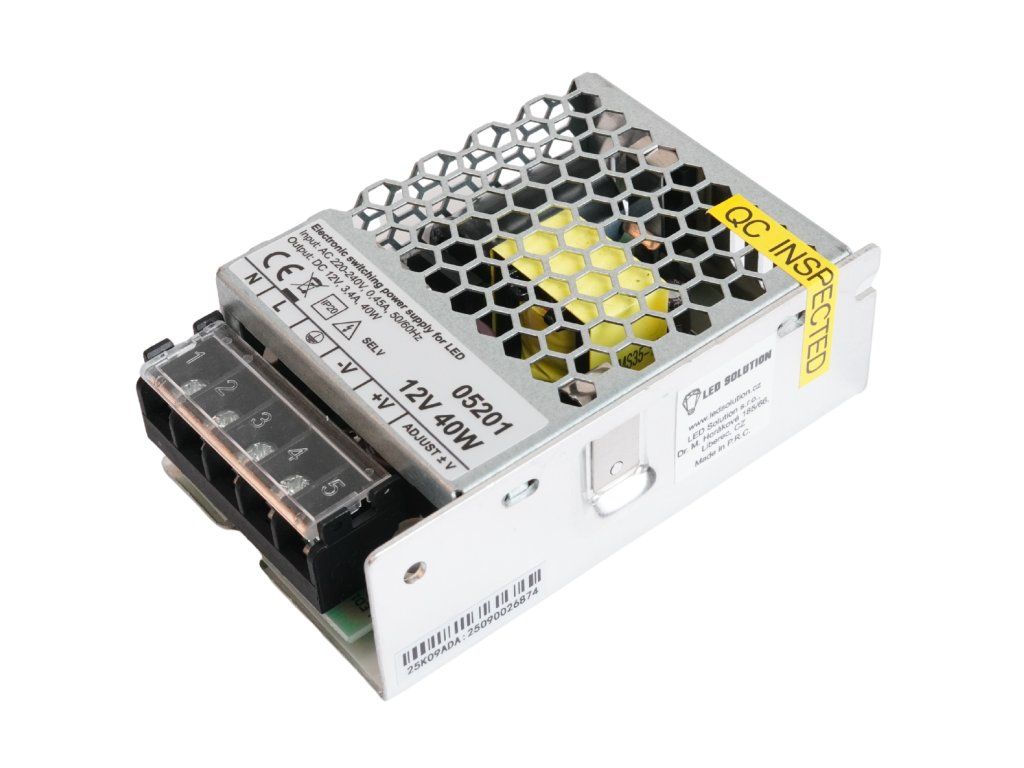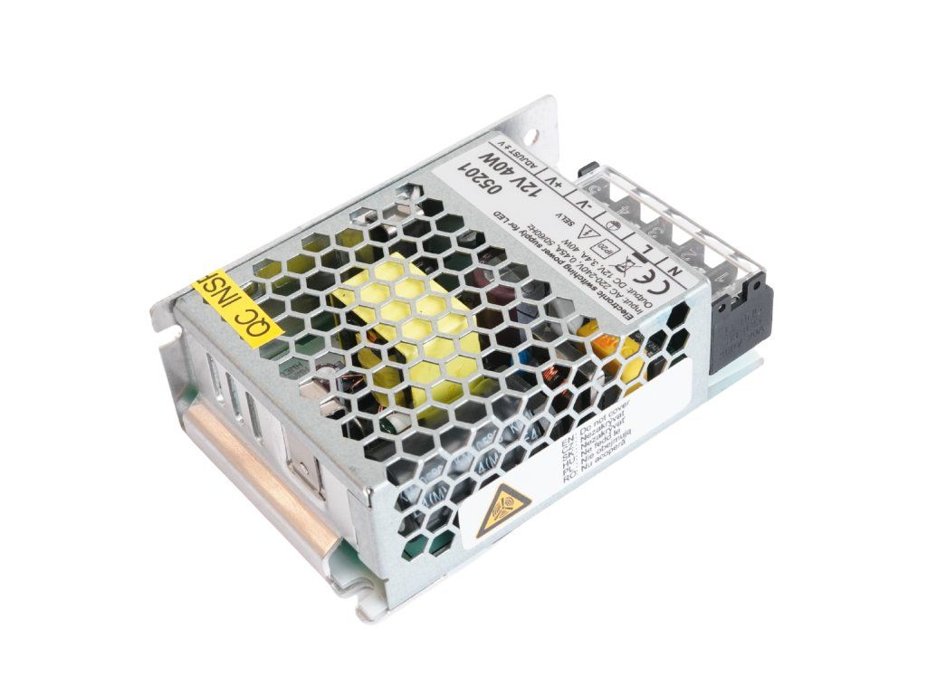 Sursele de alimentare sunt utilizate pentru alimentarea corpurilor de iluminat cu LED-uri. Acestea transformă tensiunea de rețea (AC 230V) în tensiune joasă (DC 12V / 3,4A). Sursele de alimentare sunt echipate cu siguranțe termice, siguranțe de suprasarcină și siguranțe de scurtcircuit. După eliminarea scurtcircuitului, sursa de alimentare este complet funcțională.
