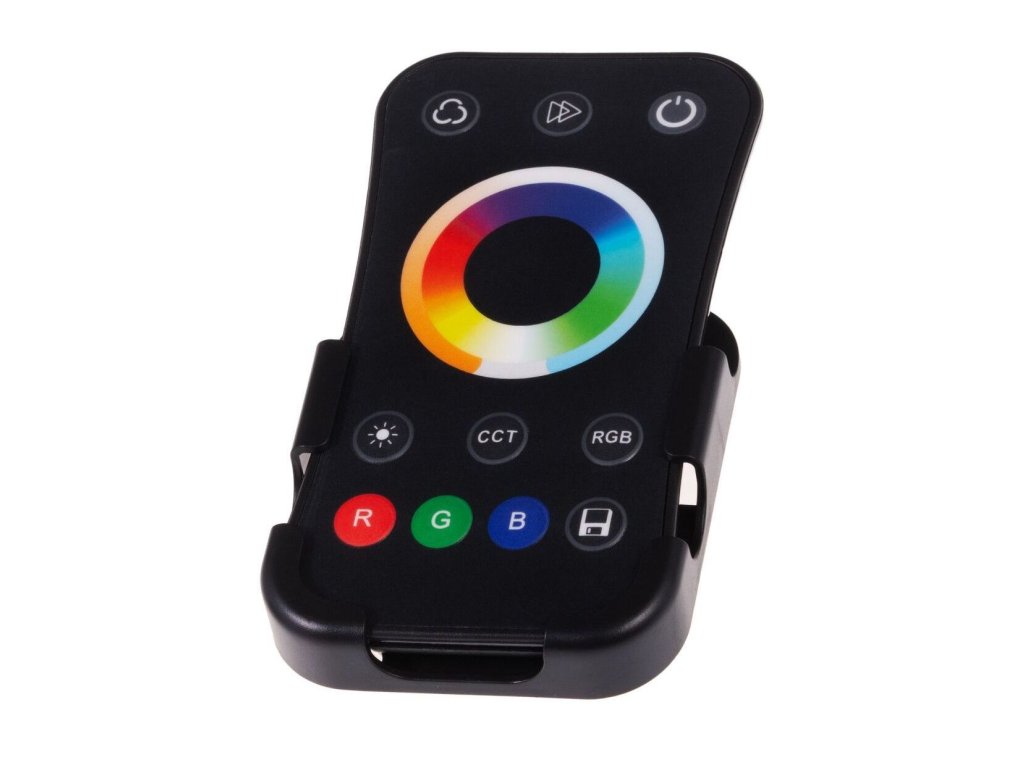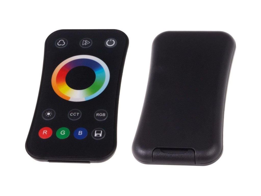 Telecomanda poate fi utilizată pentru a controla monocolore, CCT, RGB, RGBW și RGBCCT benzi LED. De exemplu, puteți controla atât benzi LED monocrome, cât și benzi LED RGB cu un singur controler, fără a fi nevoie să aveți 2 controleri diferiți. Receptorul poate fi ascuns (în spatele unui perete, gips-carton sau într-un dulap), nu este necesară vizibilitatea directă a receptorului pentru controler.