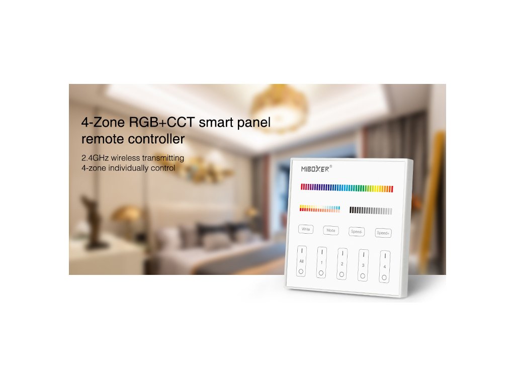 Telecomanda de perete Mi-Light AC 230V pentru benzi LED RGB și CCT este un sistem de control wireless cu frecvență radio pentru produsele Mi-Light / MiBoxer. Cu o singură telecomandă, pot fi controlate 4 zone de iluminat, care pot fi formate din mai multe receptoare. Aceste receptoare funcționează ca o singură secțiune atunci când sunt asociate cu controlerul.